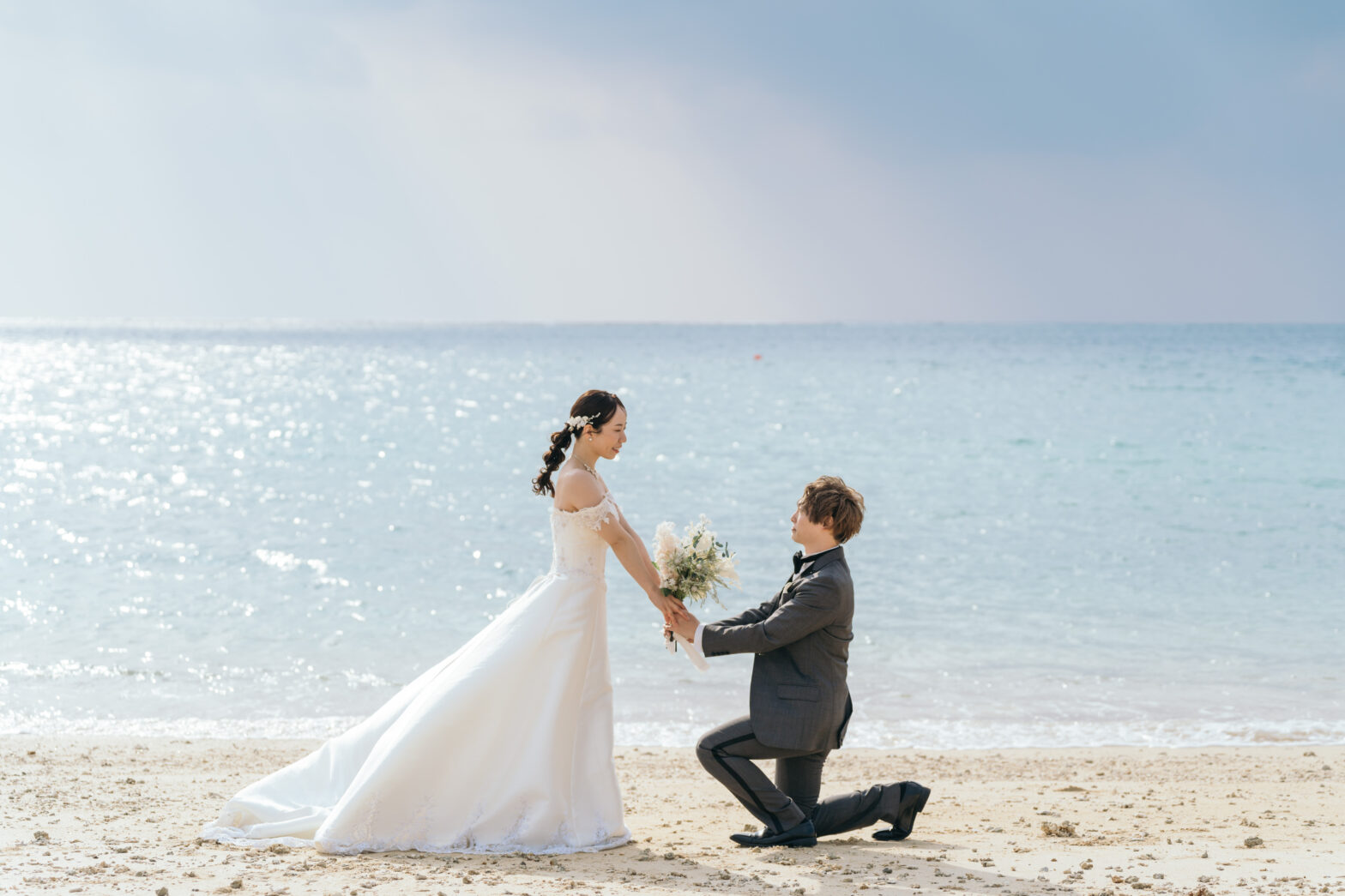 きらめく午後の海で残す、2月のビーチウェディング